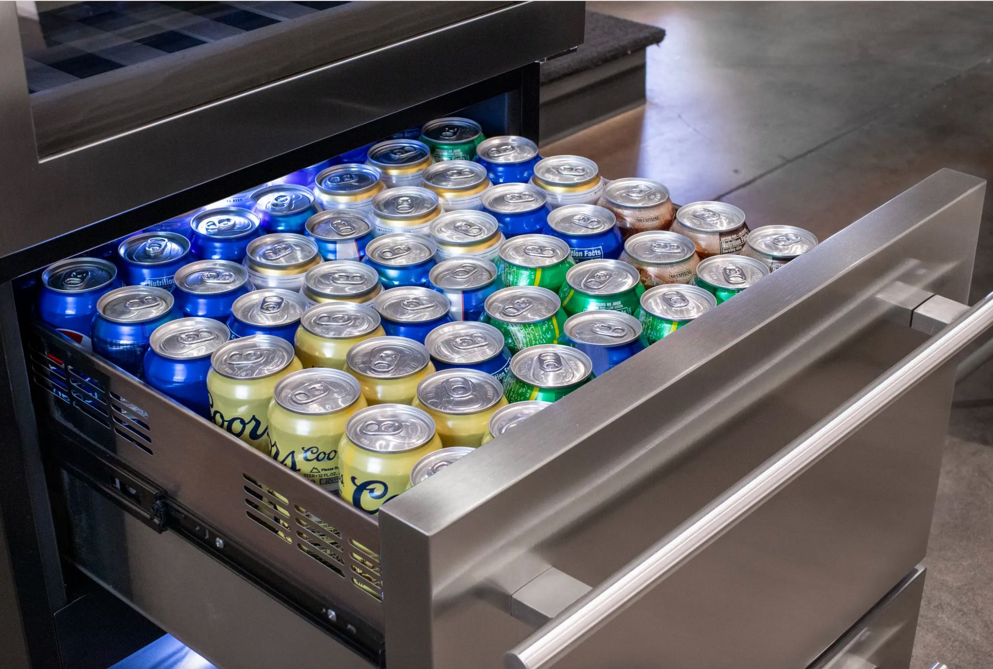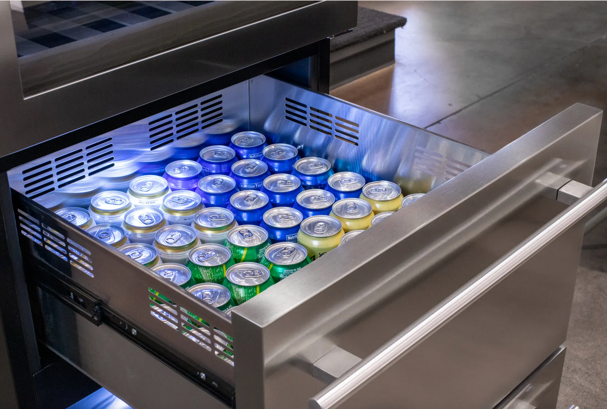| This Allavino Wine Refrigerator features two refrigerated drawers to store beer cans and other beverages