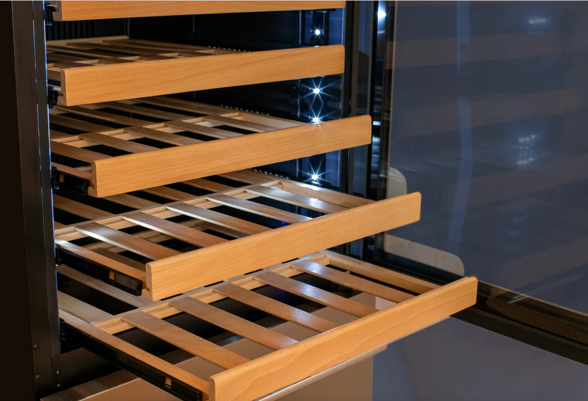| 9 sturdy elegant wood shelves can hold your wine collection of up to 108 bottles