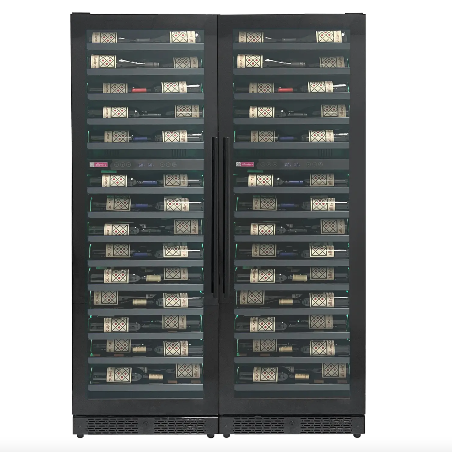 Allavino Reserva Series 134 Bottle 71" Shallow Four Zone Side-by-Side Wine Refrigerators with Black Doors and Wood Front Shelves